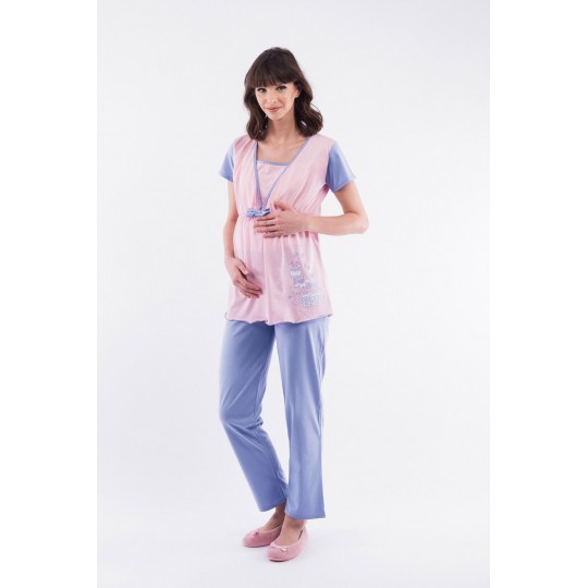 Pijama pentru alaptat, realizata din bumbac de cea mai buna calitate, special conceputa pentru a asigura confortul proaspetelor mamici.
