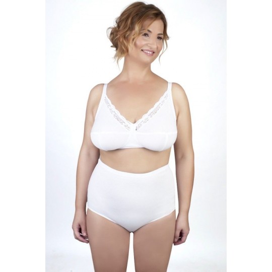 Slipi alb cu talie inalta, captusiti integral din bumbac.